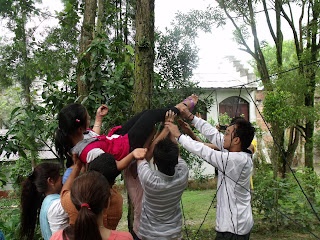 We were able to teach some outdoor group co-operation games and challenges. It was really rewarding to see the students responding this different style of learning. Most education in Nepal is formal individual textbook based so the small group teamwork challenges were a new beast to the students, after a bit of a learning curve they really enjoyed the challenges. The main challenge for us as facilitators was to get the shy Nepali girls to engage in the activities. These beautiful shy girls seem to be overwhelmed by the more boisterous boys and tend to be very quiet but with some gentle coaching we were able to get them fully engaged.